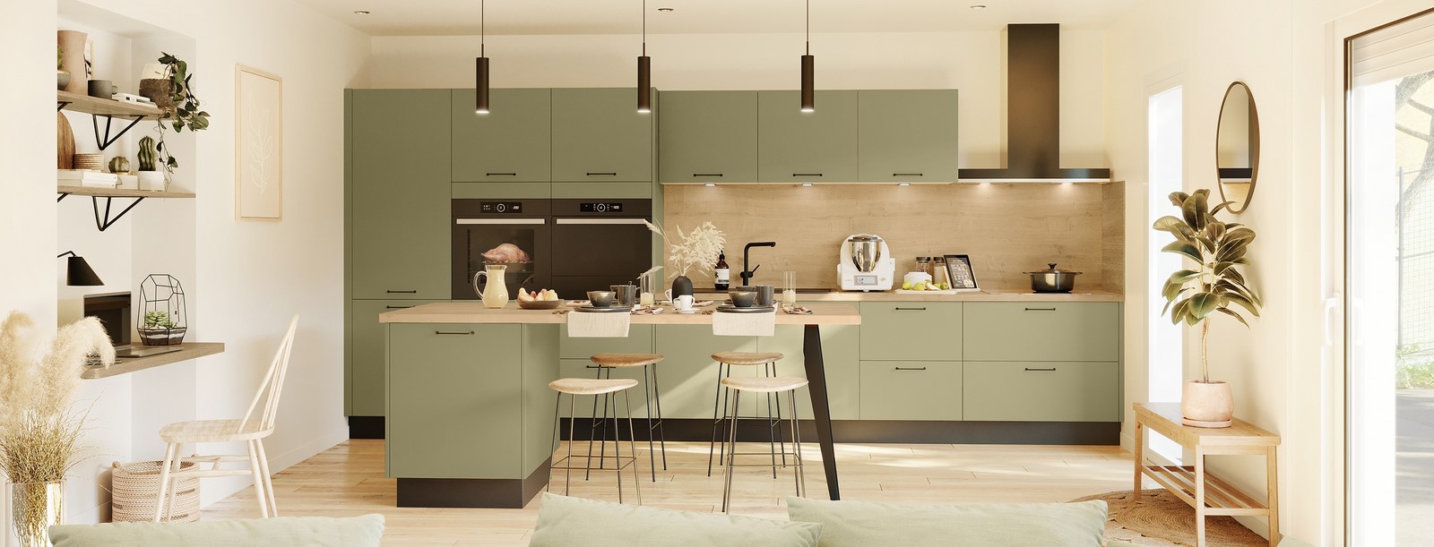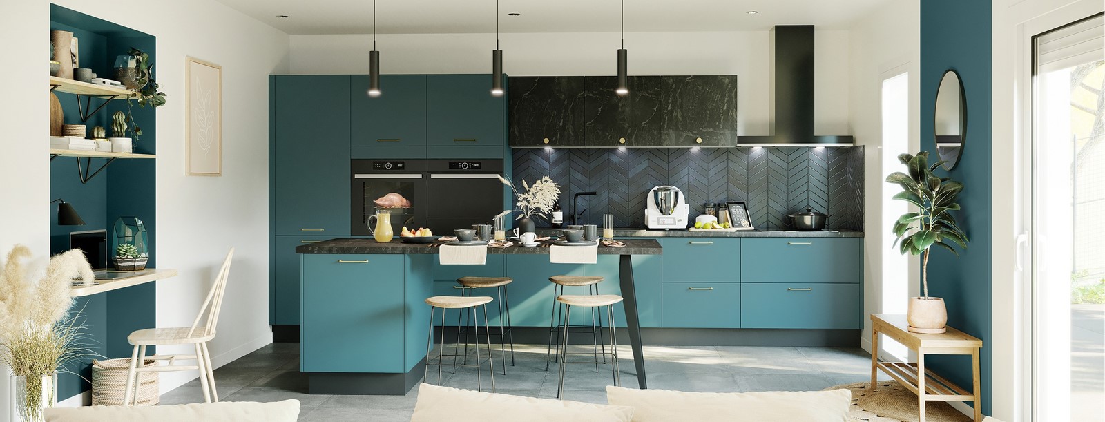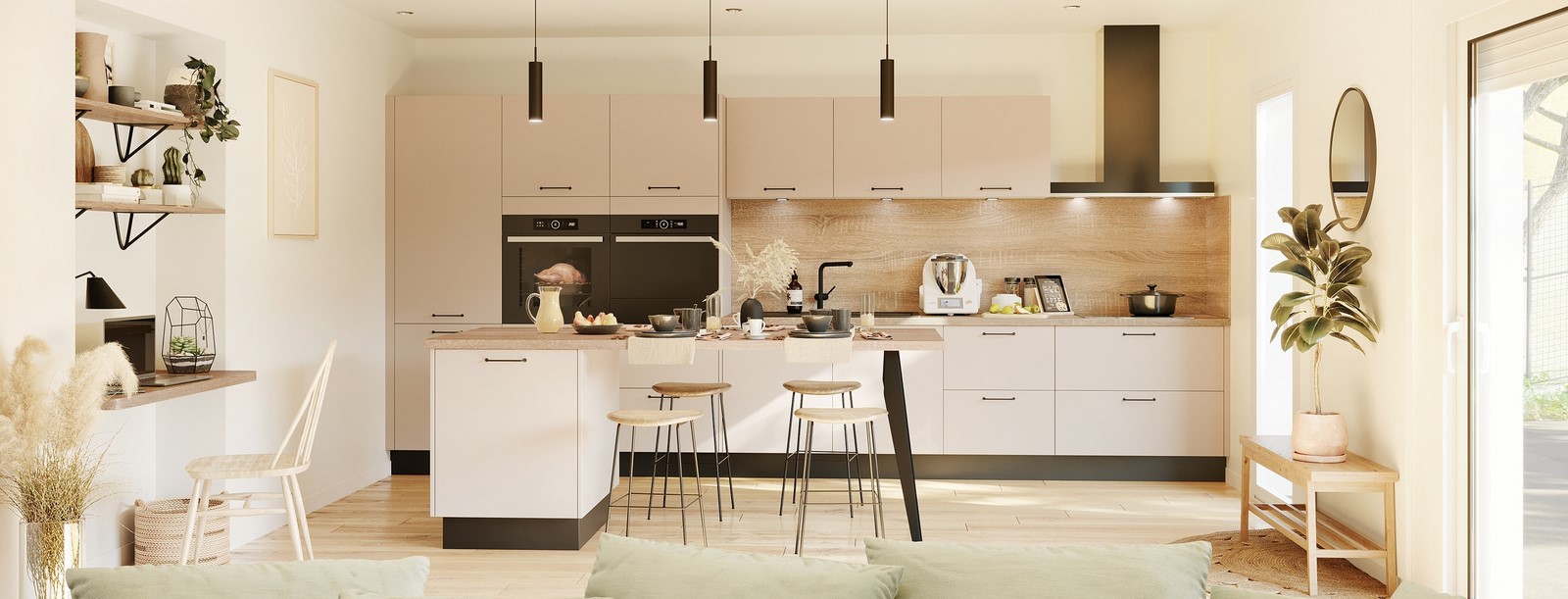 Créez votre espace table dans le prolongement de votre cuisine pour harmoniser votre espace de vie.